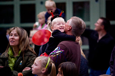 Steven Harren of Clare kisses his daughter Sydney on Friday evening at the Mardi Gras parade. Harren says, "the kids really enjoy dressing up and watching the parade."
